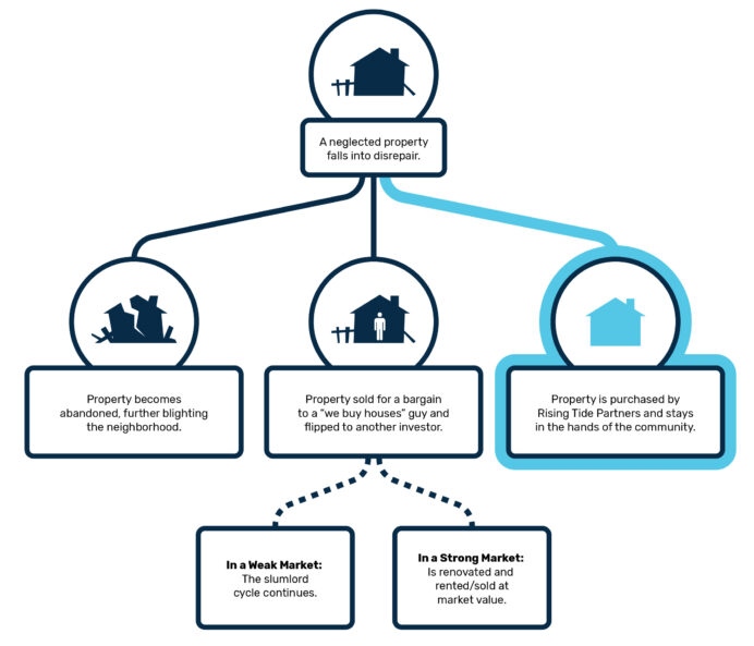 We address the riskiest real estate, including abandoned properties that are costly to repair, and slumlord properties that are harming tenants